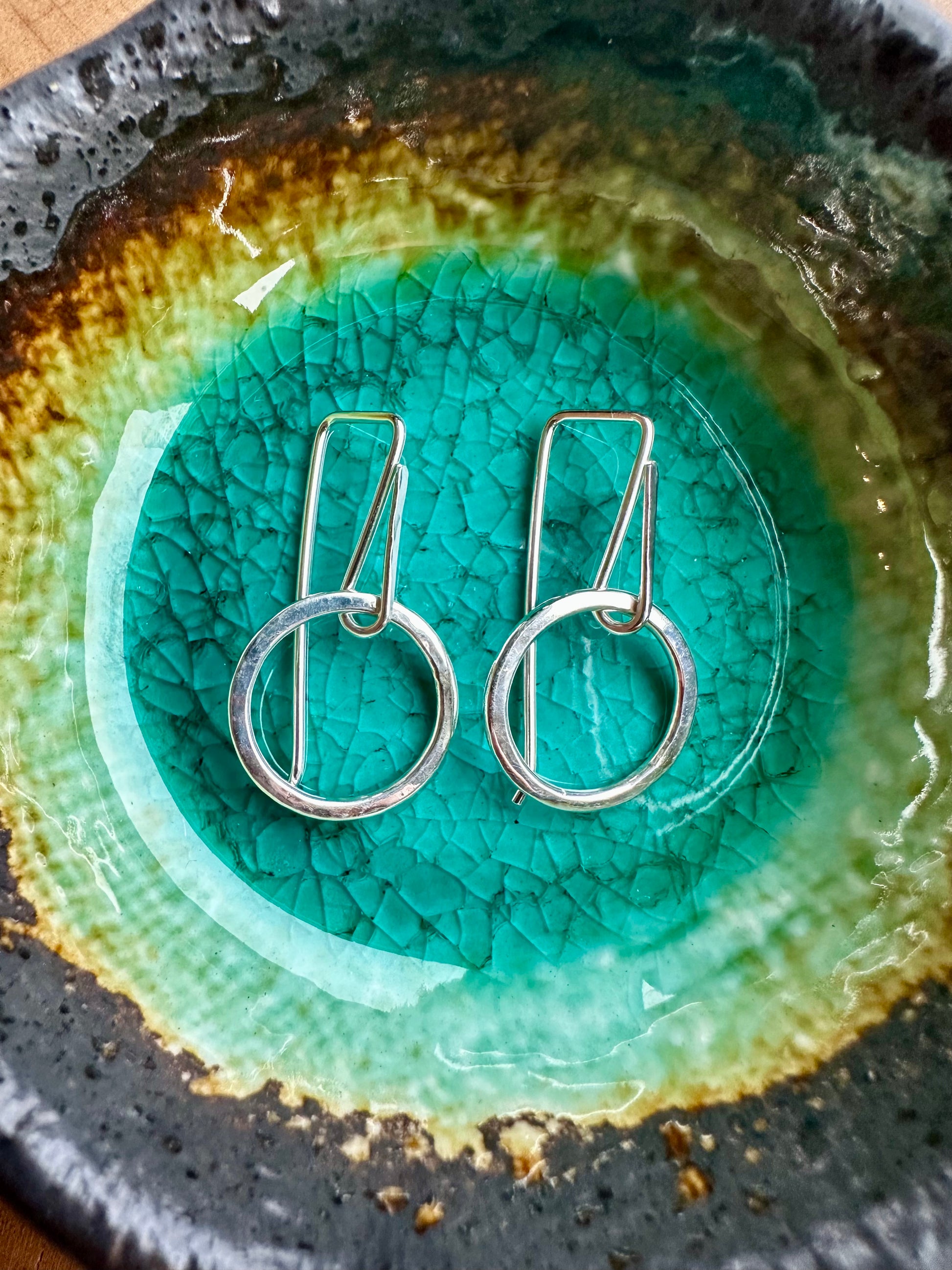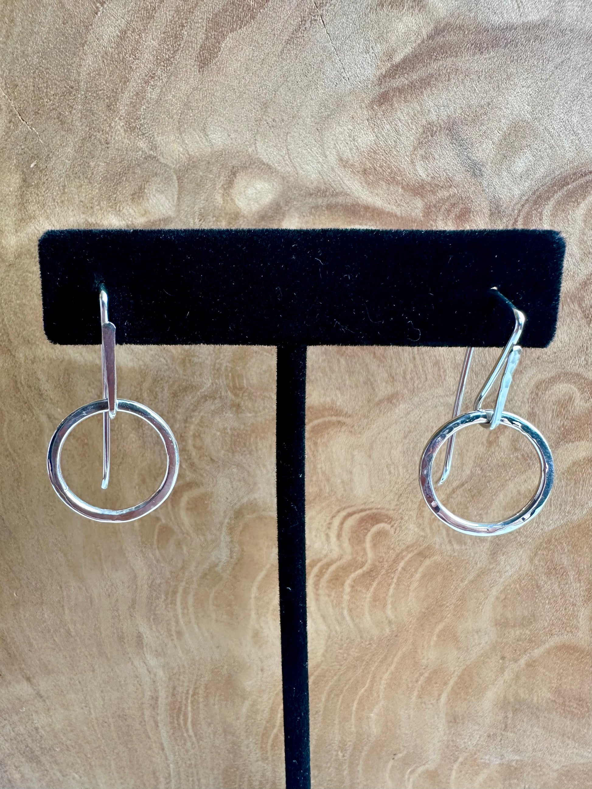 Hand crafted on the shores of Hood Canal with sterling silver, these hand-hammered Lumiere Earrings showcase a timeless and elegant style. 1 1/2 inches long and 3/4 inch across these earrings are delicate yet durable. Perfect for adding a touch of sophistication to any outfit. Hand made ear wire made from thicker than a typical post 18 gauge sterling silver.