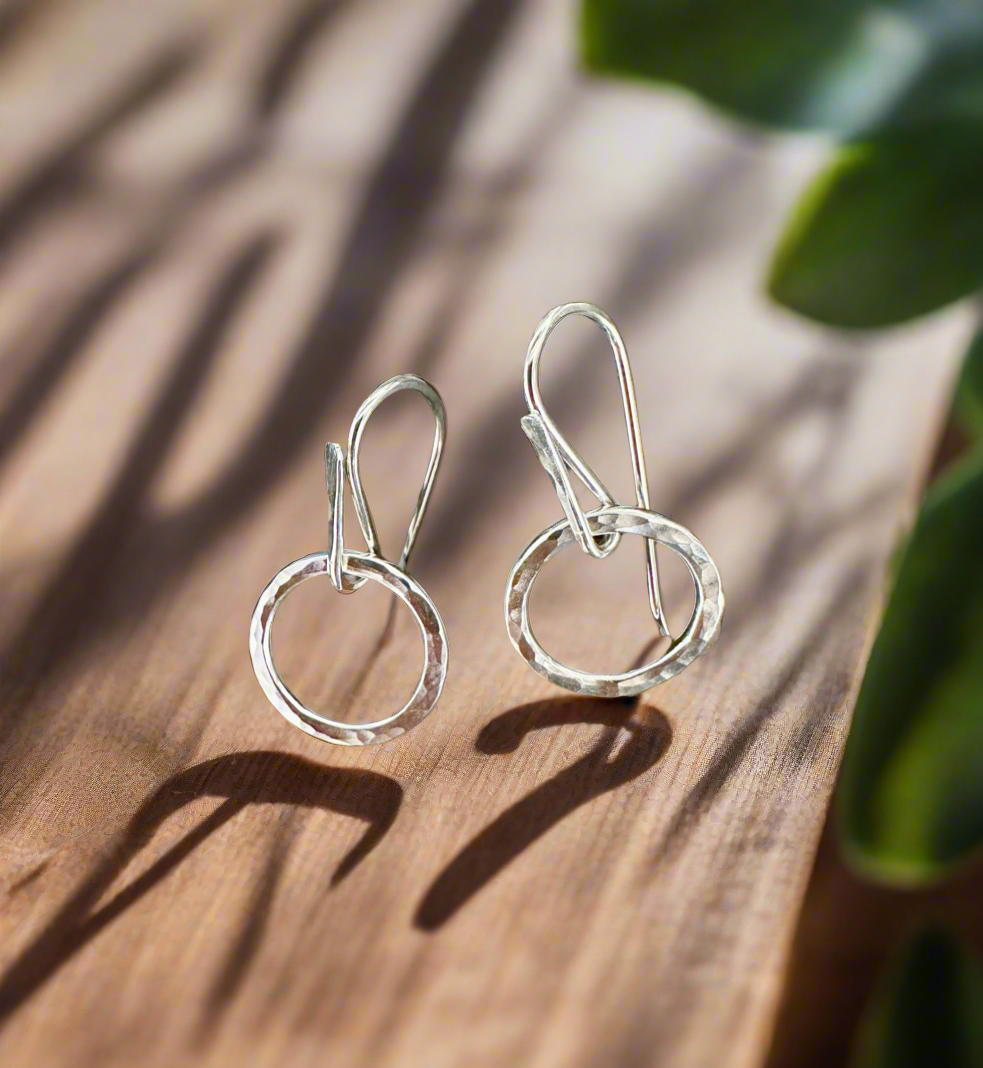 Hand crafted on the shores of Hood Canal with sterling silver, these hand-hammered Narrows Moon Earrings showcase a timeless and elegant style. Delicate yet durable, they are perfect for adding a touch of sophistication to any outfit. Hand made earwire made from thicker than a typical post 18 gauge sterling silver.
